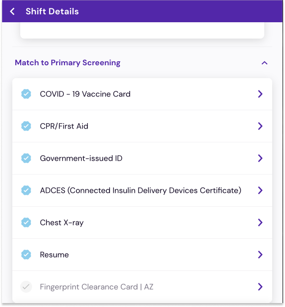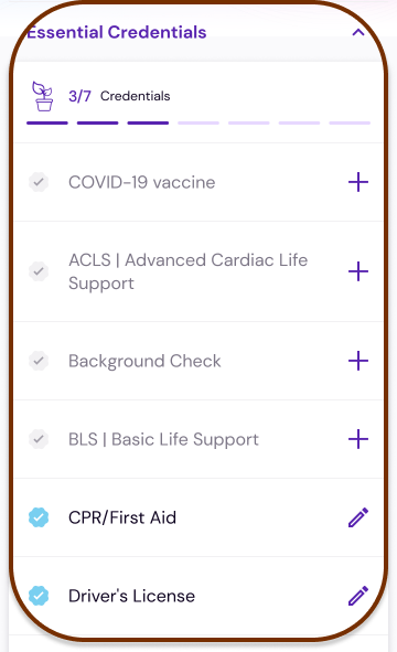 Onboarding for this experience can be an instantaneous process, if the clinician is eager to work immediately. However, more commonly the process is days, weeks or even months long. For new users to be successful, the app must enable them to craft a compelling profile that demonstrates compliance and qualification criteria are met and resonates with the hiring personnel at medical facilities.