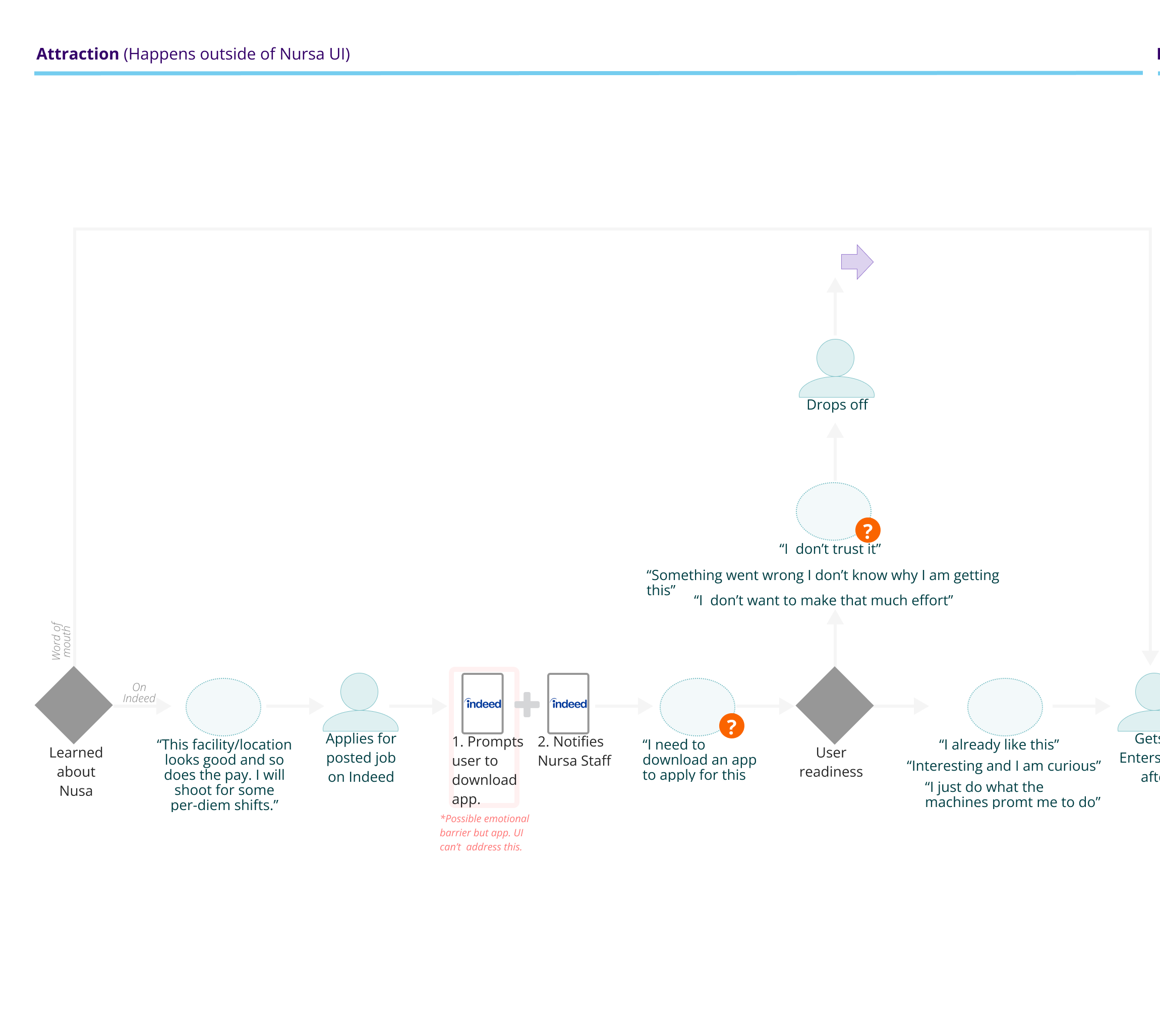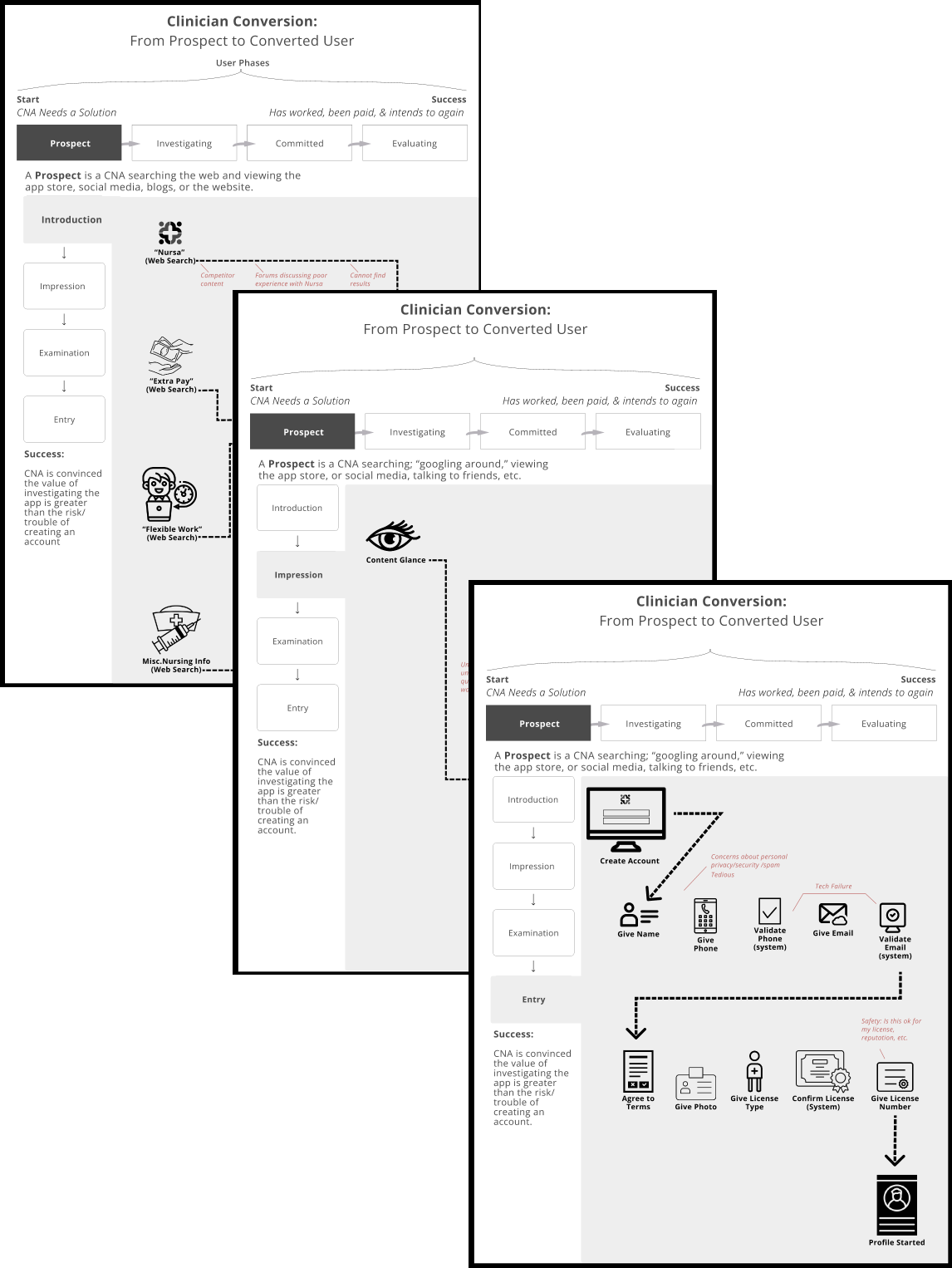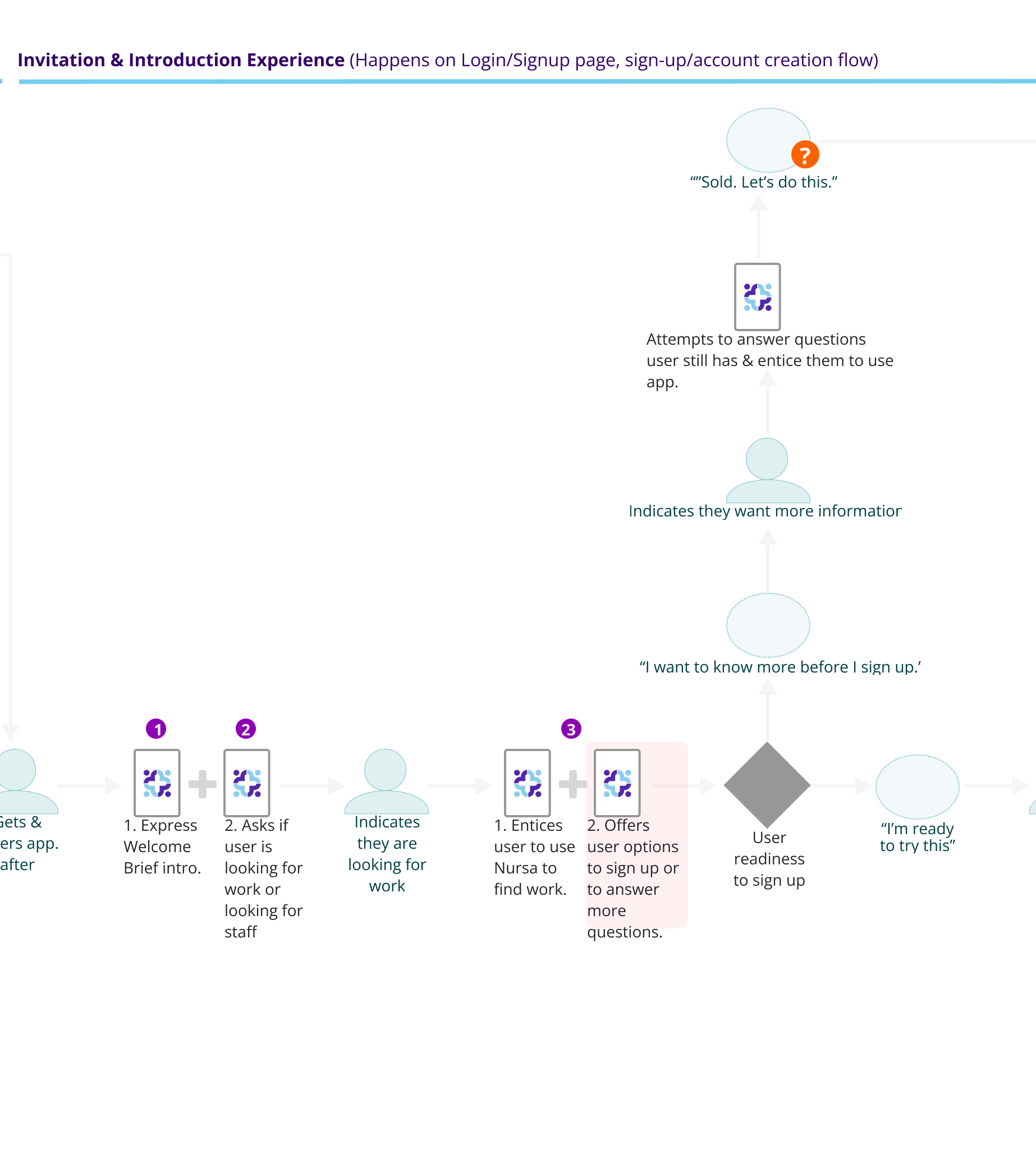 So for this marketplace, the onboarding process of this platform is intricately tied to the conversion life cycle. It extends beyond mere registration and a moment of “purchase.” The initial encounter is the registration screen, but the true conversion of a nurse or to an app user does not occur until the user has had a positive experience establishing a successful connection with a medical facility.