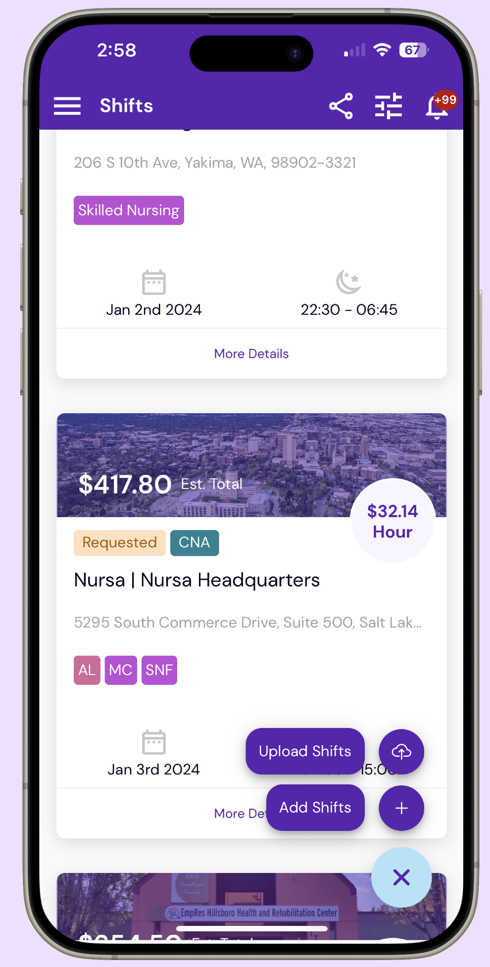 This app is a mobile (mostly) application that offers a way for medical facilities to post their single-shift needs on a market place, where qualified nurses and nursing assistants can opt-in to single days of work at premium pay.