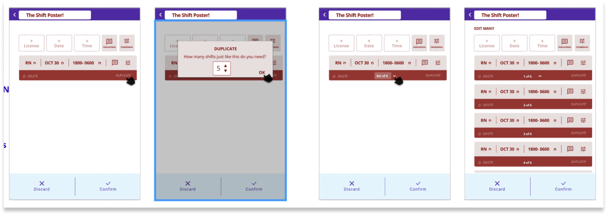 As simple as that flow was, customers were used to agencies who managed this part for them. They would previously just send the agency a list of times and dates and let the agency do the rest. Often, many shifts needed to be advertised and once, so this posting process was just too time consuming as it was.